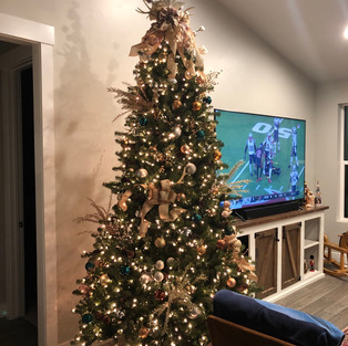I love my design this year. It has allowed me to mix up ribbon and colors making a beautiful, homey Christmas design. The mixed metals pulled it all together. Silver, Platinum, Gold, Copper, Bronze, Rose Gold and a touch of Emerald For Patina. By mixing different sizes, texture, styles of bulbs with natural elements it looks elegant without a lot of fuss.