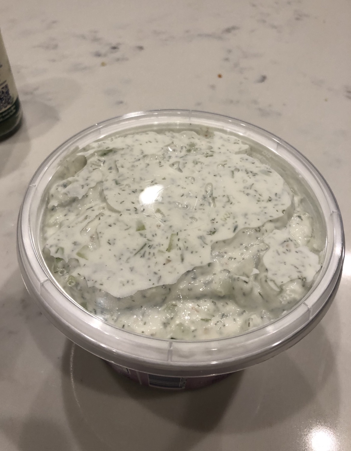 In a mixing bowl place the yogurt, cucumber, garlic, dill, oregano, salt, vinegar, lemon juice, olive oil, and pepper. Mix together and place in an airtight container overnight.